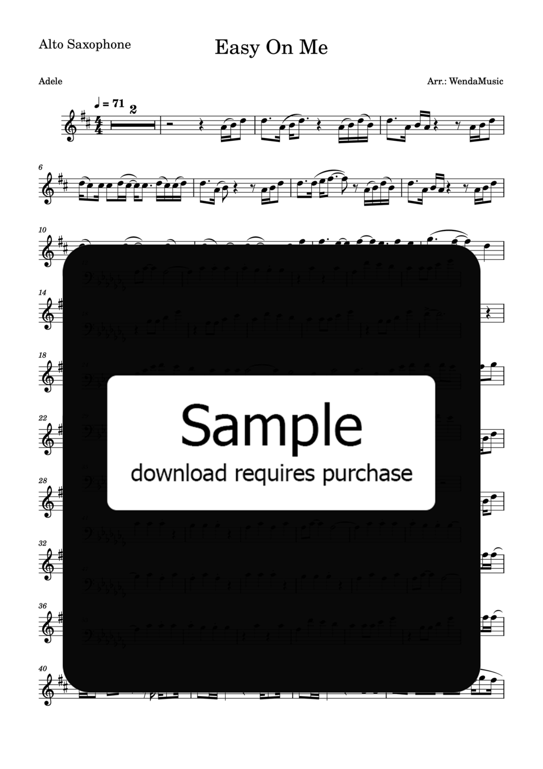 Bring warmth and lyrical beauty to life with this specially arranged sheet music for alto saxophone, featuring Adele’s heartfelt ballad Easy on Me. Whether you’re a student exploring expressive music outside the standard etudes or a seasoned performer looking for a moving showpiece, this arrangement highlights the saxophone’s rich tone, flexibility, and emotional depth in a soulful setting.