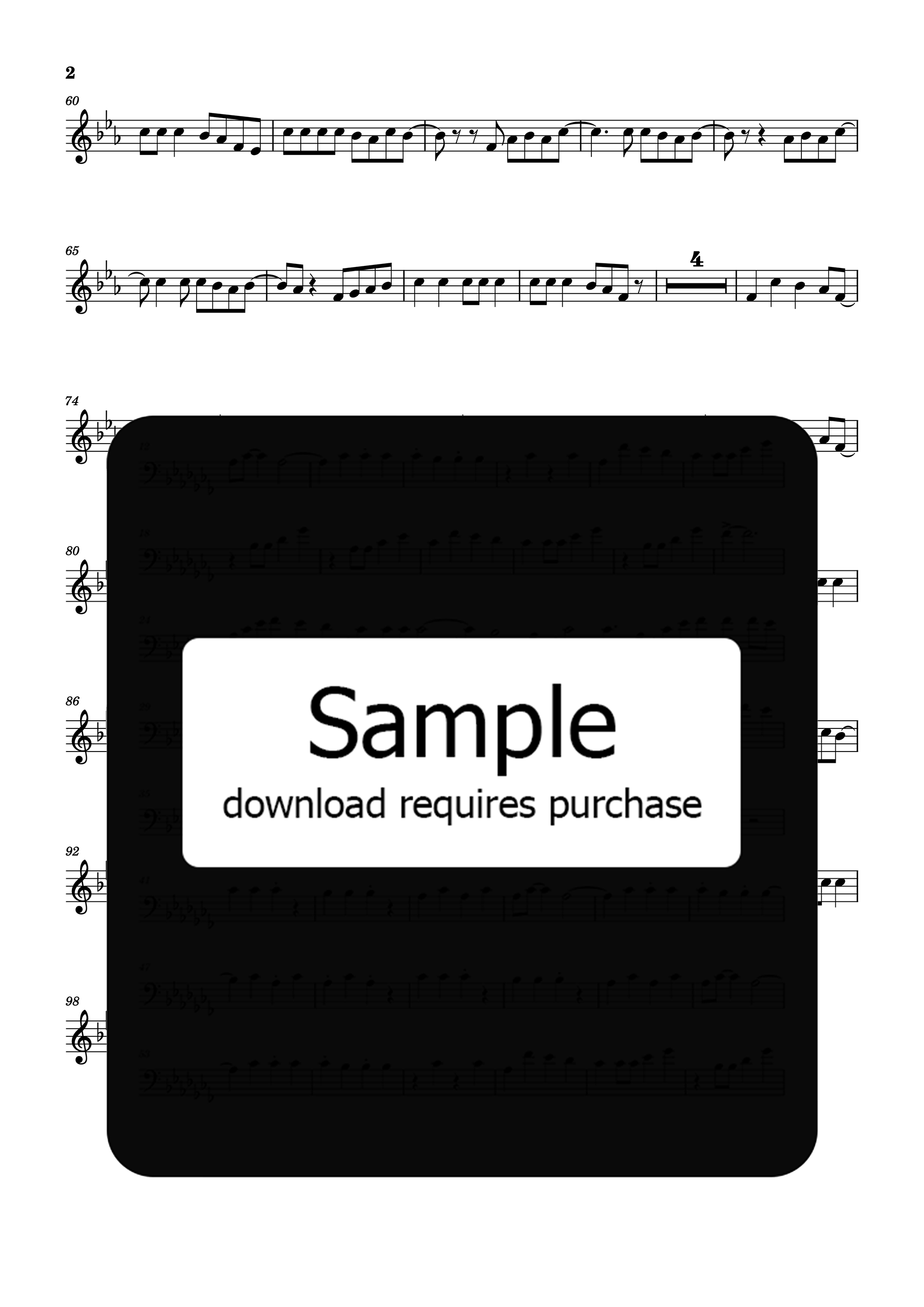 The transcription preserves the swagger and drive of Bruno Mars’ original track, with articulations and dynamics adapted for the trumpet’s sharp, energetic attack.