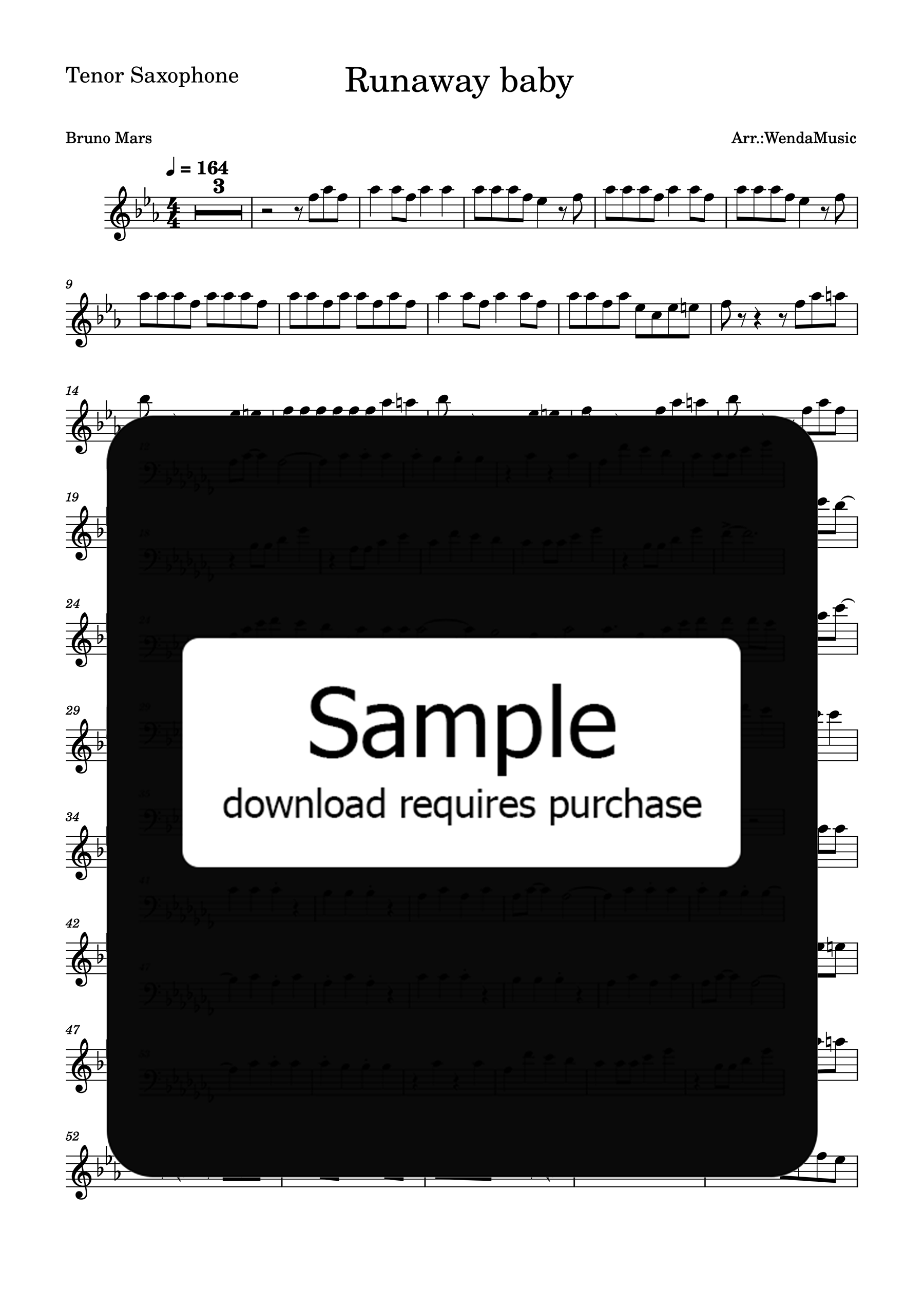 Sheet music to the song Wake Me Up by Avicii for tenor saxophone